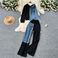Casual Suit For Women Fashionable Design Splicing Hooded Sweatshirt High Waist Denim Splicing Wide Leg Pants Two Piece Set