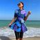 HomeWomen's ClothingMuslim FashionMuslim Swimsuit Women's Floral Chain Bikini Top Quick Dry Short Sleeve Swimming Suit Beachwear Sexy Tight High Elasticity