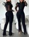 Women’s Clothing New Black Sequin Mesh Lace Design Long Sleeve Tight Leg Slit Jumpsuit