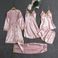 Women's Clothing ladies' pajamas bra pads Gold five piece set simulated silk dress sexy suspender skirt long sleeved nightgown home clothes