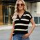 Women's Clothing Lapel Casual Striped Sweater Vest Waistcoat Sweater