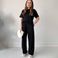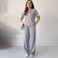 HomeWomen's ClothingWomen's SportswearWomen's Clothing New Solid Color Short Sleeved Top With Strap Pocket Straight Pants Suit