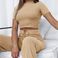HomeWomen's ClothingWomen's SportswearWomen's Clothing Short Sleeved Cropped Tops Trousers Knitted Casual Suit
