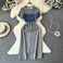 Women's Clothing Slimming Short Sleeved Denim Patchwork Dress Coffee Break Waisted Fashionable Mid Length Round Neck Age Reducing T Shirt Dress