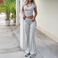 HomeWomen's ClothingWomen's SetsWomen's Clothing Solid Color V Neck Short Sleeved T Shirt Flared Pants 2 Piece Set