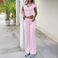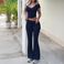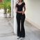 Women's Clothing Solid Color V Neck Short Sleeved T Shirt Flared Pants 2 Piece Set